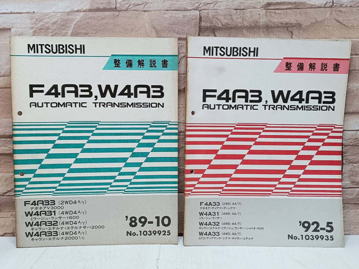 > 【2冊セット】1989年10月 1992年5月発行 三菱 F4A3 W4A3 整備解説書 ’89-10 ’92-5 デボネア ギャラン GTO No.1039925 1039935 オートマ