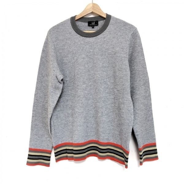 > ダンヒル dunhill/ALFREDDUNHILL 長袖セーター/ニット サイズS - ライトグレー×グレーベージュ×マルチ メンズ クルーネック トップス