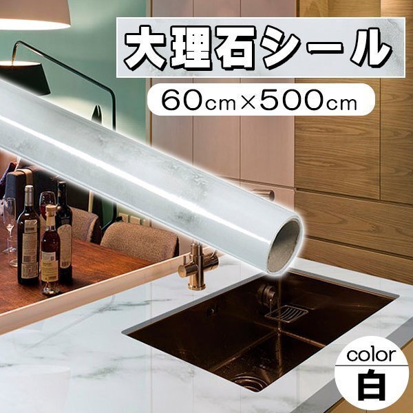 - 大理石シール 壁紙 カッティングシート耐熱シート 耐熱 防油 防カビ浴室 壁紙 大理石調 壁紙シール リメイクシート60cmx長さ5m ホワイト