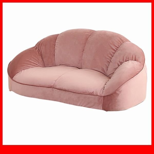 > ソファ★新品/大人かわいいインテリア ローソファ 2人掛け/キュートなフォルム コンパクト ベロア調生地 安心の日本製/ピンク/a5