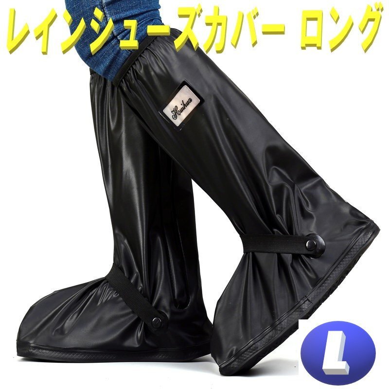 > レインシューズ カバー Lサイズ 25.0cm~26.0㎝ 防水 靴カバー レインブーツ 普段使い 反射テープ 付き ロング 丈