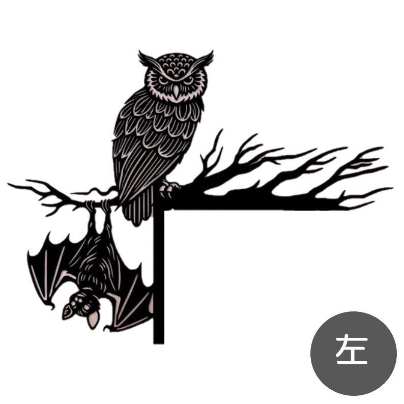 > ドア オーナメント フクロウとコウモリ 30cm 左 雑貨 置物 園芸 ガーデン オブジェ 梟 ふくろう ミミズク 蝙蝠 n920