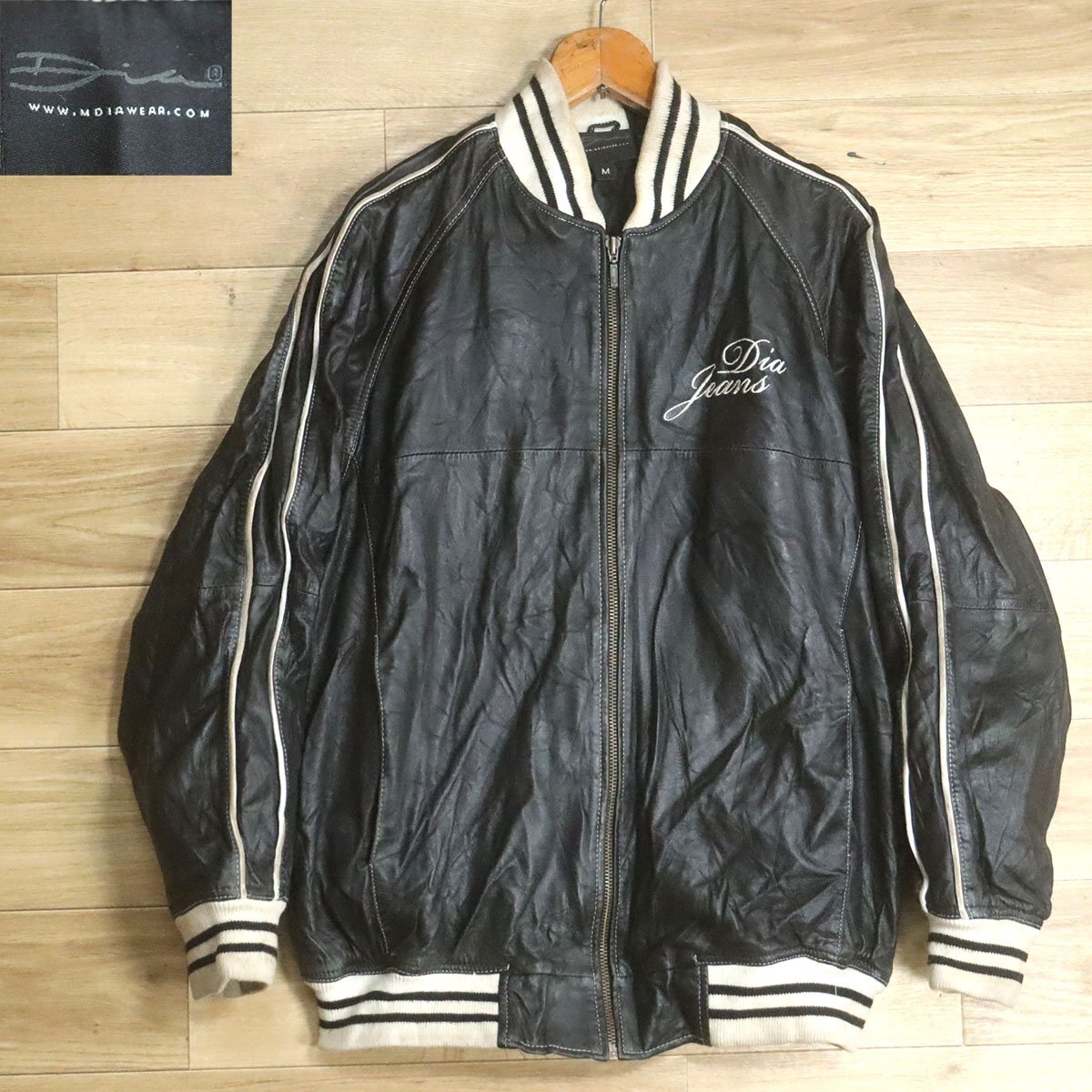 - Z1R/S6.5-3 ユーロ古着 Dia オールレザースタジャン 本革 レザージャケット レザーブルゾン 革ジャン 皮ジャン 刺繍 M