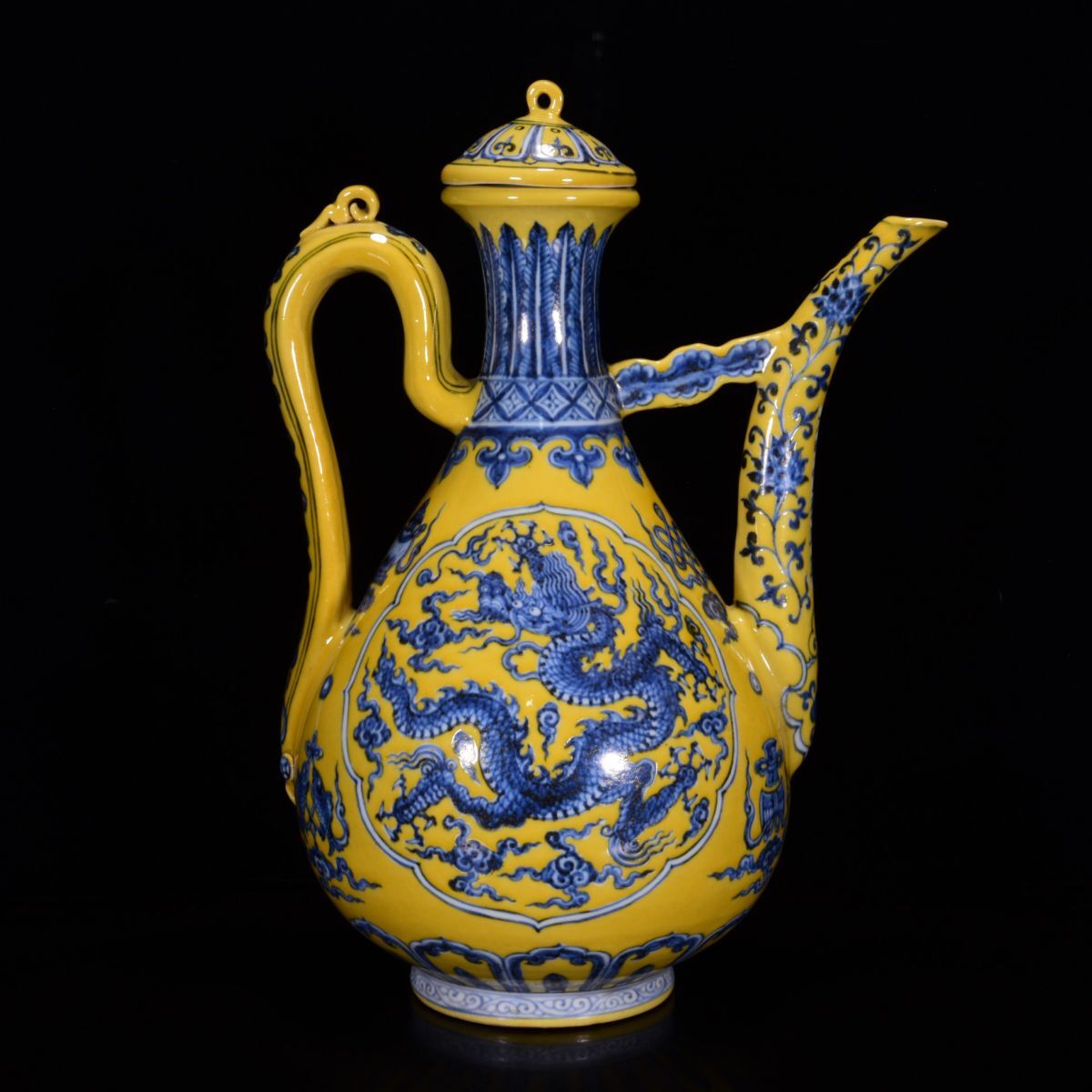 - 永し 明時代 大明宣德年製 黄釉青花 龍紋壺 古陶磁器 陶芸 皿 中国陶瓷器 唐瓷 置物擺件 古美術品 古賞物 収集 旧家蔵出 中国唐物