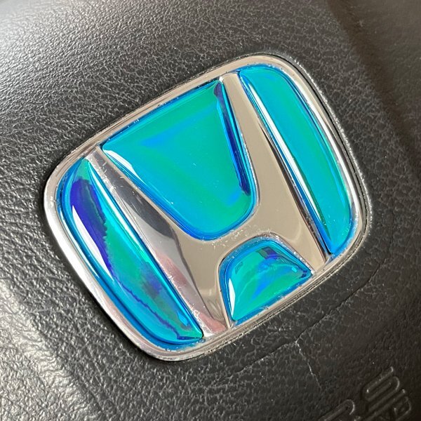 - ホンダ ステアリング エンブレムシート オーロラメッキブルー ハンドル用 SDH-H01 樹脂盛立体3D加工 ZEROWIN HONDA