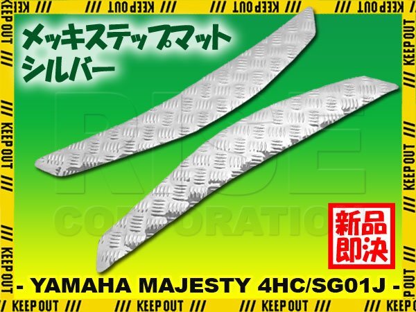 > アルミ調 ステップマット ヤマハ マジェスティ 4HC/SG01J シルバー メッキ バイク ゴムマット ステップボード カスタム 交換 パーツ 部品