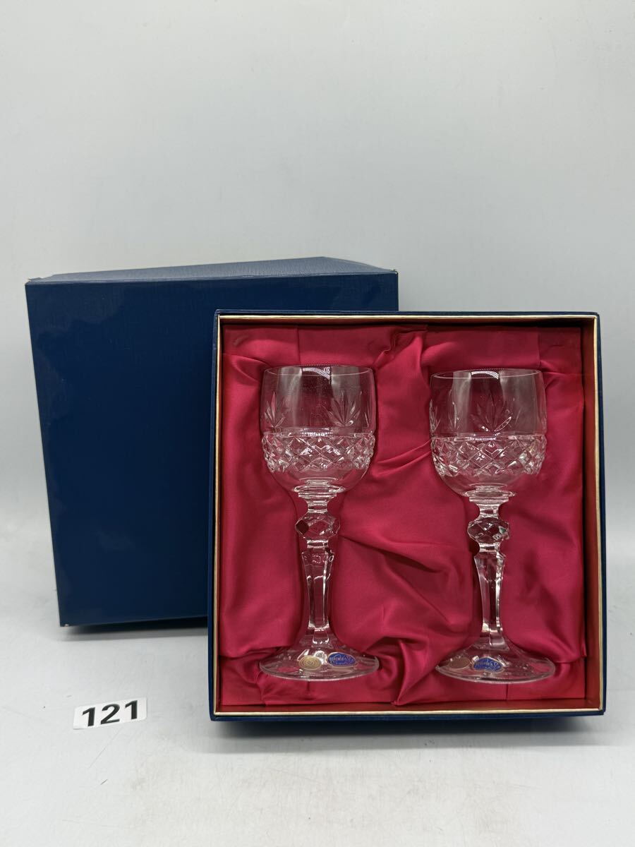 - No.121 ボヘミアクリスタル 24%PbO ワイングラス ペアセット/カットガラス チェコ製 元箱付き クリスタル ペアグラス 食器 BOHEMIA 酒器