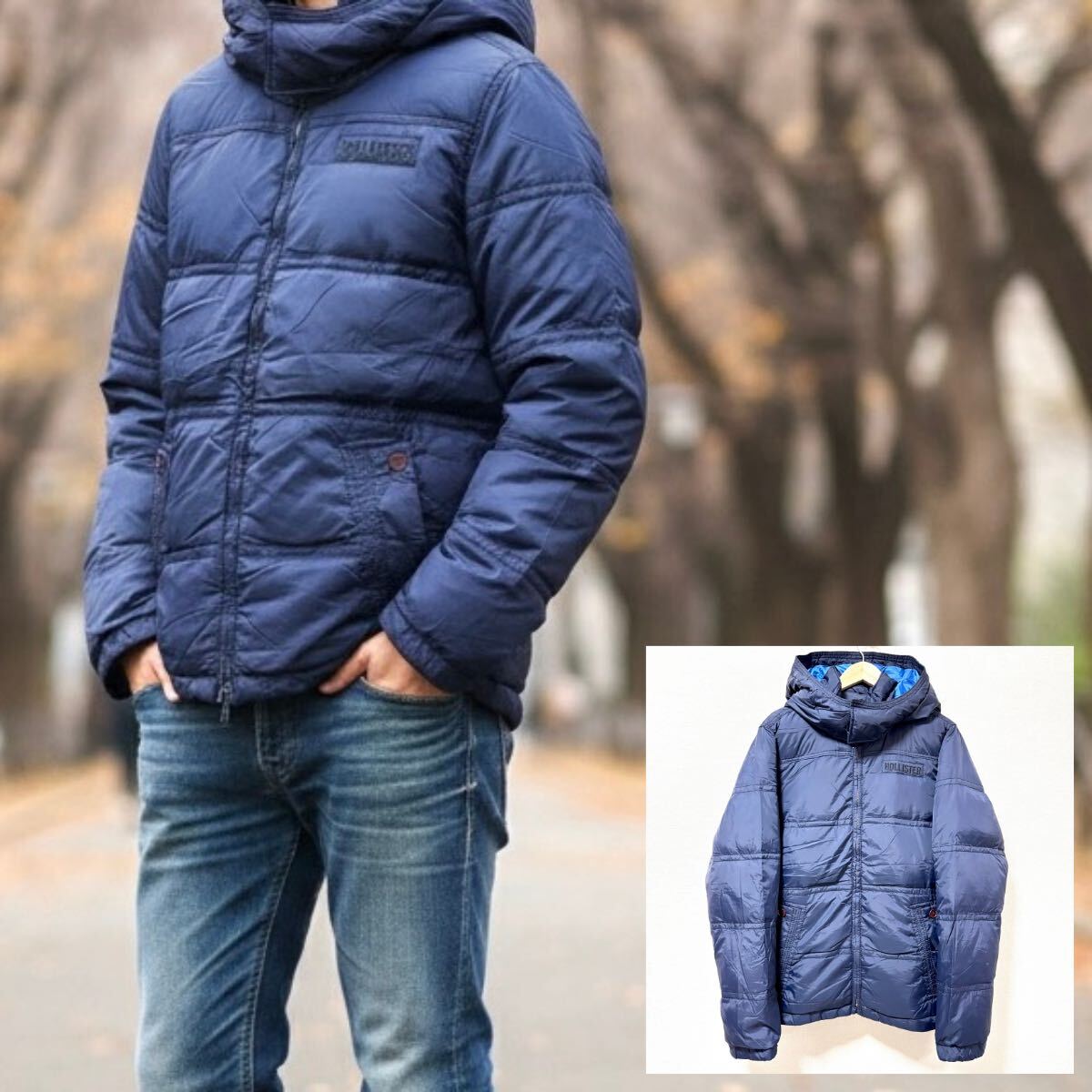 > ビッグフード◎【HOLLISTER】ホリスター ダウン ジャケット アウター ナイロン ロゴ アバクロ サーフ アメカジ ネイビー 紺 L /Y38215SS