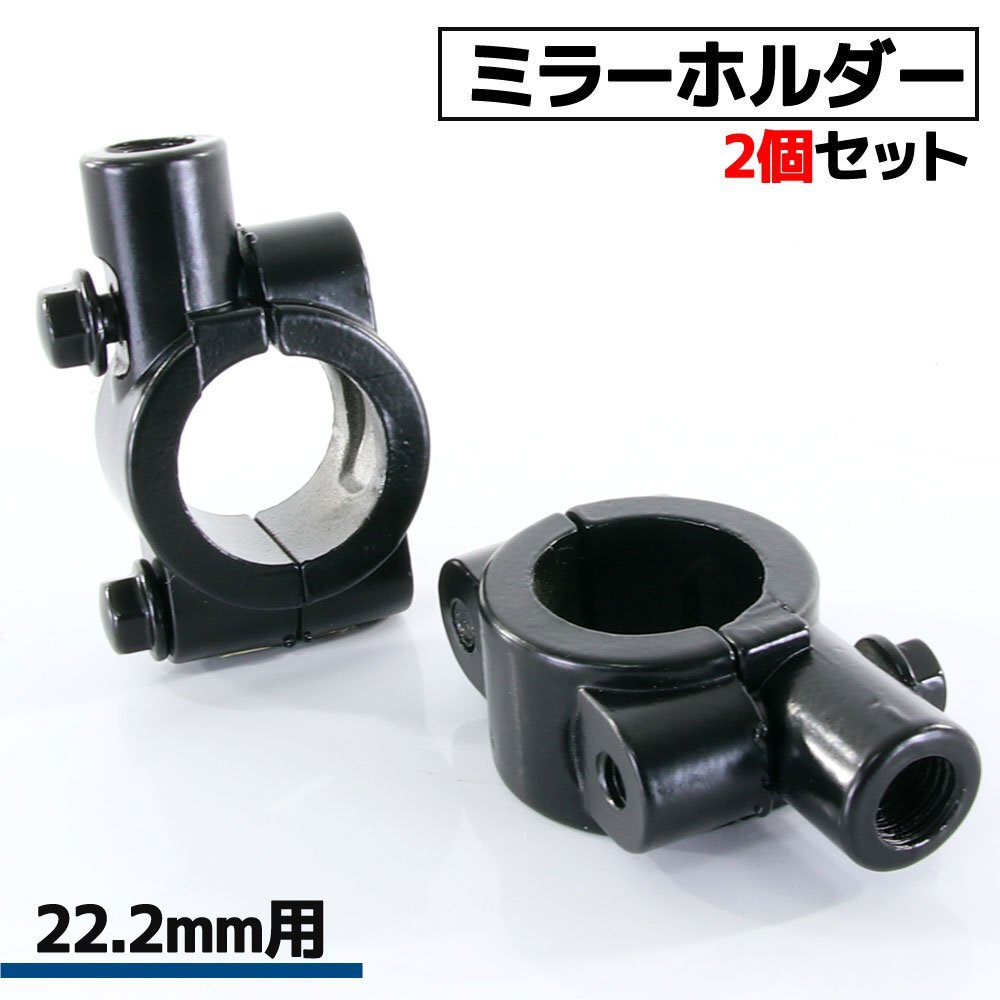 ミラーホルダー バイク オートバイ 汎用 ブラック 2個セット 正ネジ 10mm M10 ハンドル ハンドルバー 22.2mm 22mm 自転車 交換