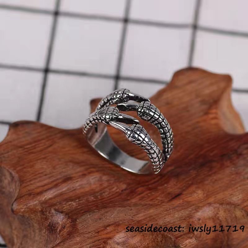 - 1円から ◆新品 超希少 指輪 シルバー925 リング 鷹の爪 ドクロ アクセサリー ターコイズ メンズ レディース 男女兼用フリーサイズ調整可