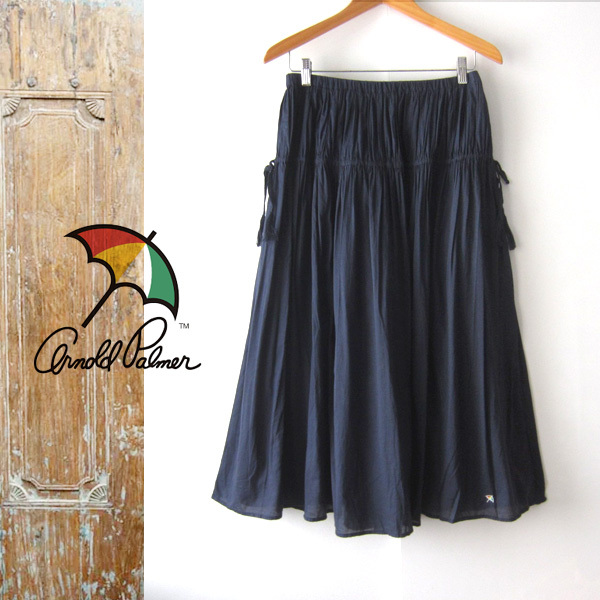 - 美品 Arnold Parmer/アーノルドパーマー★ 薄手コットン ひざ丈フレアスカート ネイビー