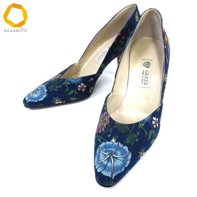 - #axs グッチ GUCCI パンプス 36 紺 花柄 フローラ フラワー 花柄 ハイヒール イタリア製 イタリー ヴィンテージ レディース [974903] k01