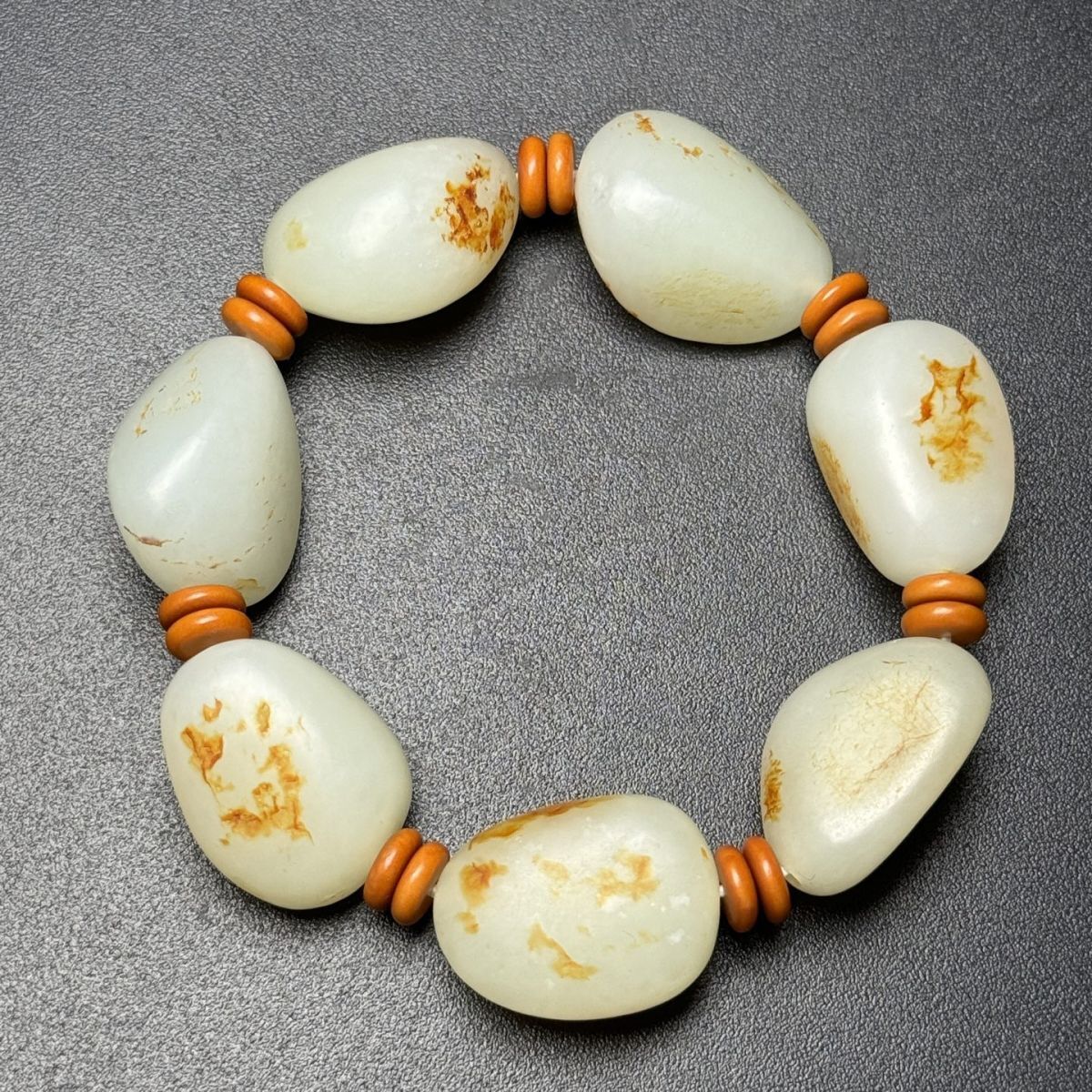 > 永し 清時代 和田玉彫 原石 手串 極細工 置物擺件 古美術品 時代物 古董品 収集 古美味 骨董品 旧家蔵出 中国唐物 80g