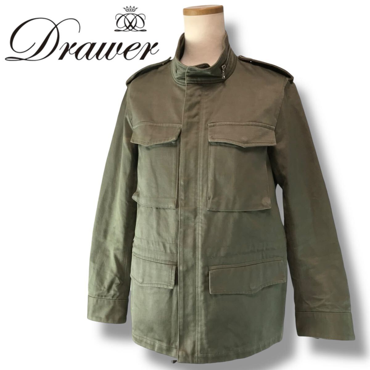 > e102 Drawer ドゥロワー ミリタリージャケット ブルゾン カーキ アウター ジャケット コットン100% 36 日本製 レディース 正規品