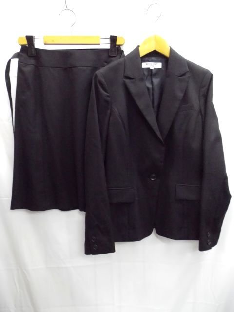 > 美品★NATURAL BEUTY BASIC◎ナチュラルビューティベーシック/スーツ/ジャケット&スカート/セットアップ/ベルト付き/ブラック/黒/W63cm/S
