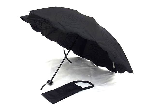 - YVESSAINTLAURENT イヴサンローラン フラワー 花柄 3段折り 折りたたみ傘 折り畳み傘 高級傘 日傘 アンブレラ ブラック系 DK6385