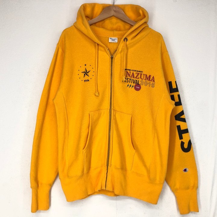 - Champion REVERSE WEAVE チャンピオン リバースウィーブ 稲妻フェスティバル 2015 STAFF パーカー SIZE: L マスタード MH632025111115