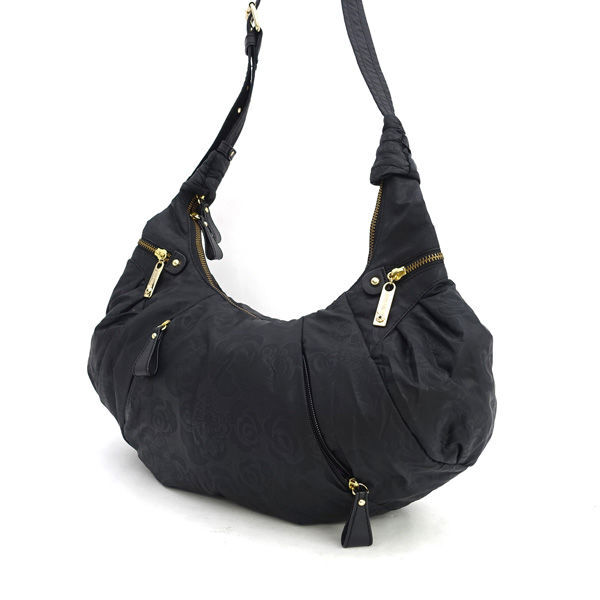> ■ アナスイ クロスボディ ショルダーバッグ ナイロン バタフライプリント ブラック (0990015090)