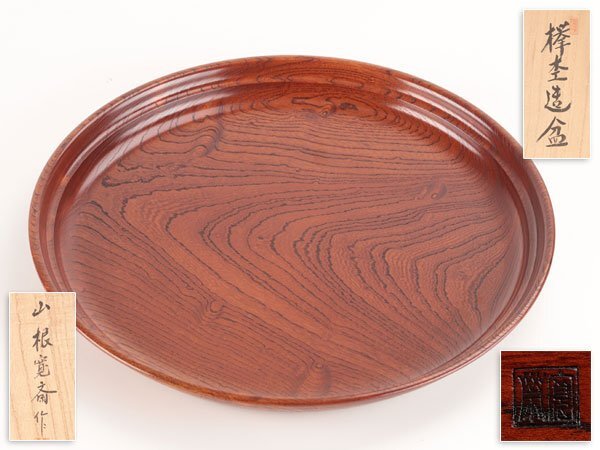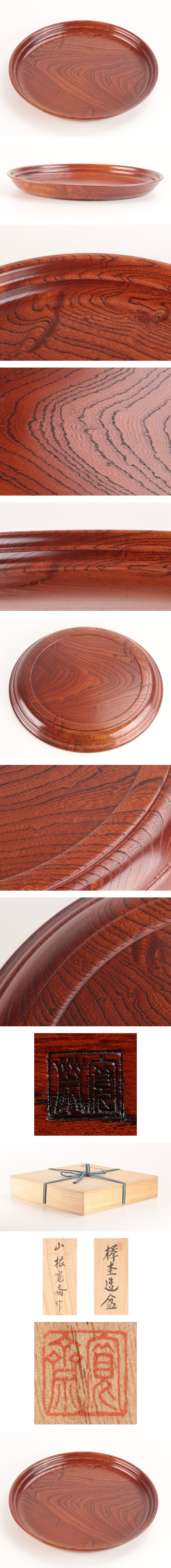 【流】山根寛斎 欅杢造 盆 幅36cm 共箱 HD142拍卖