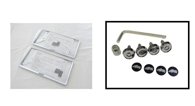 - スズキ純正 クロームメッキ ナンバーフレーム 2枚セット スズキエンブレム付 & ジムニー ナンバーロックボルト サイロゴ入り 4本セット