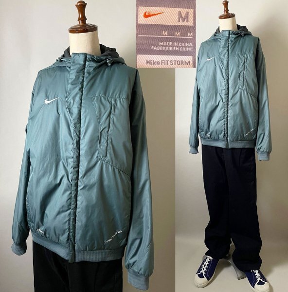 > 【デザイン◎希少 近年ビンテージ】 NIKE MERCURIAL ナイキ マーキュリアル サッカー 中綿 ダウン ジャケット M グレーがかったグリーン系