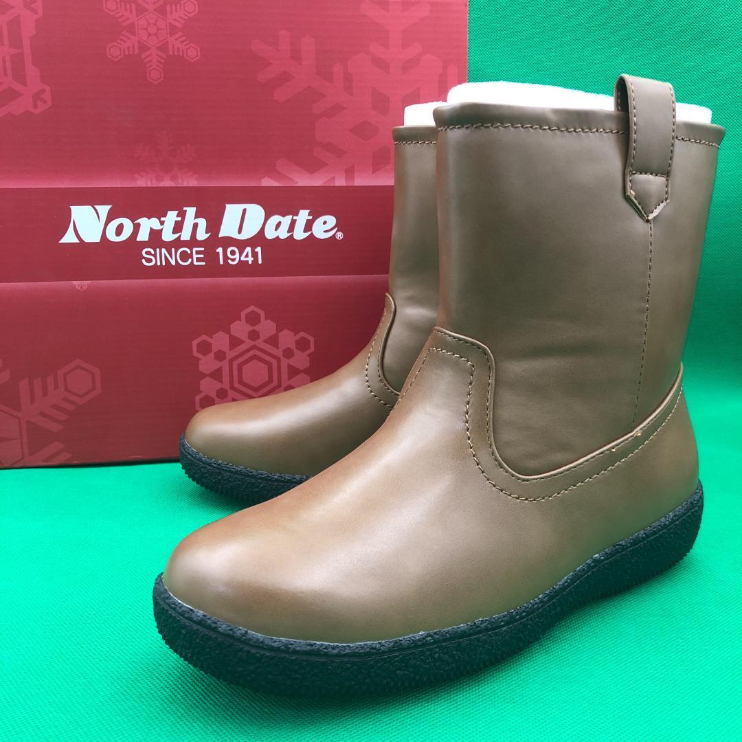 > ノースデイト レディース ブーツ ブラウン 24.5cm スパイク付き★新品 送料無料★防寒 防水 スノーシューズ ウィンター 防滑 冬靴 579749