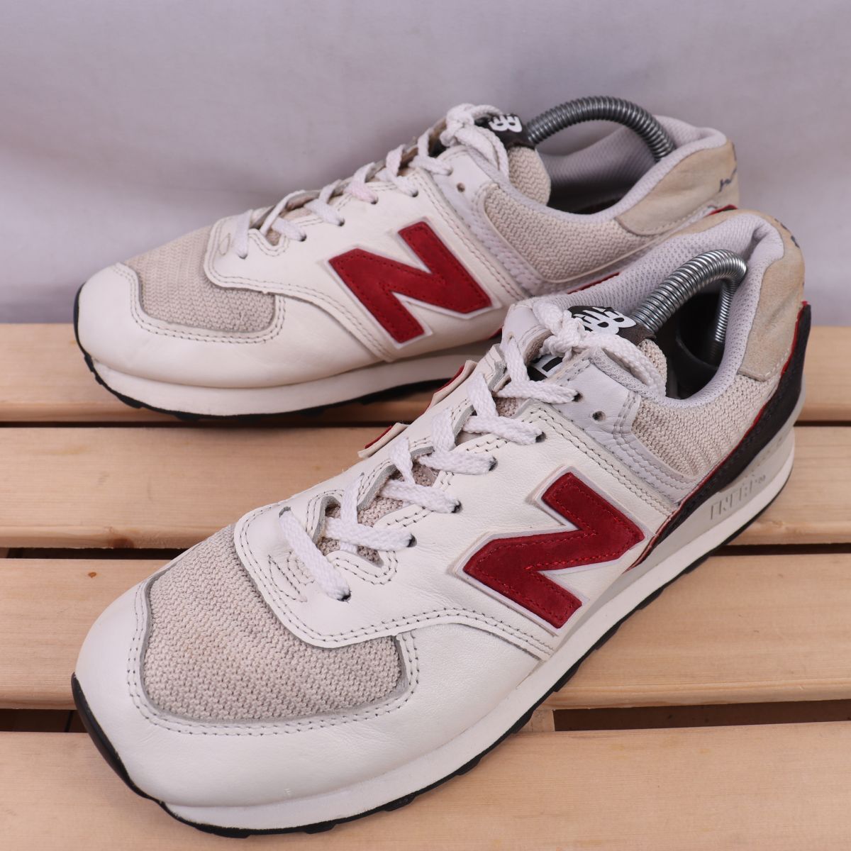 - z3387【574】ニューバランス 26.5cm/白 ホワイト 黒 ブラック 赤 レッド newbalance メンズ スニーカー 中古