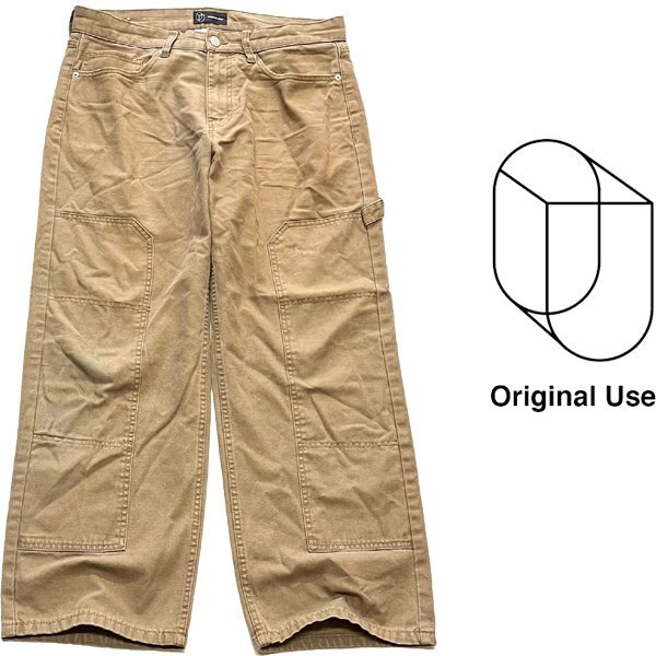 - 1点物◆Original USEダブルニー茶ワイドペインターパンツ古着メンズ34レディースOKアメカジ90sストリート/ワークパンツ中古ジーンズ362426