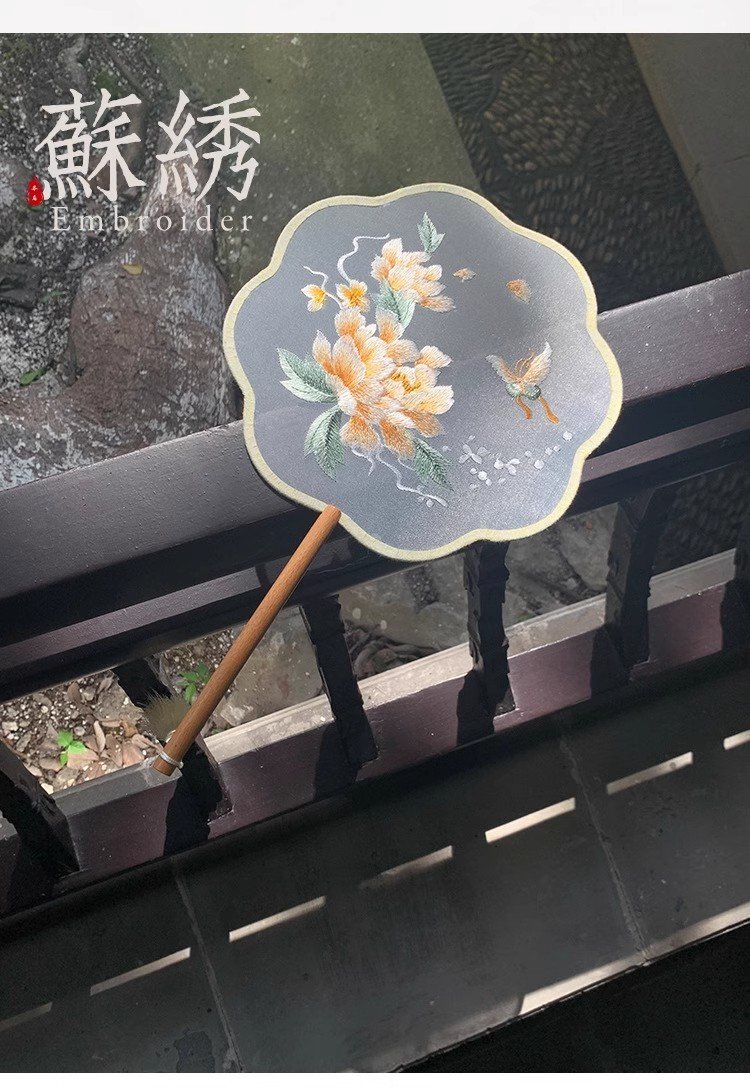 - 送料無料 刺繍美品 蘇繍 扇 団扇 うちわ 金牡丹 蝴蝶 中国工芸品 お土産 置物 収蔵 使用可 zh445