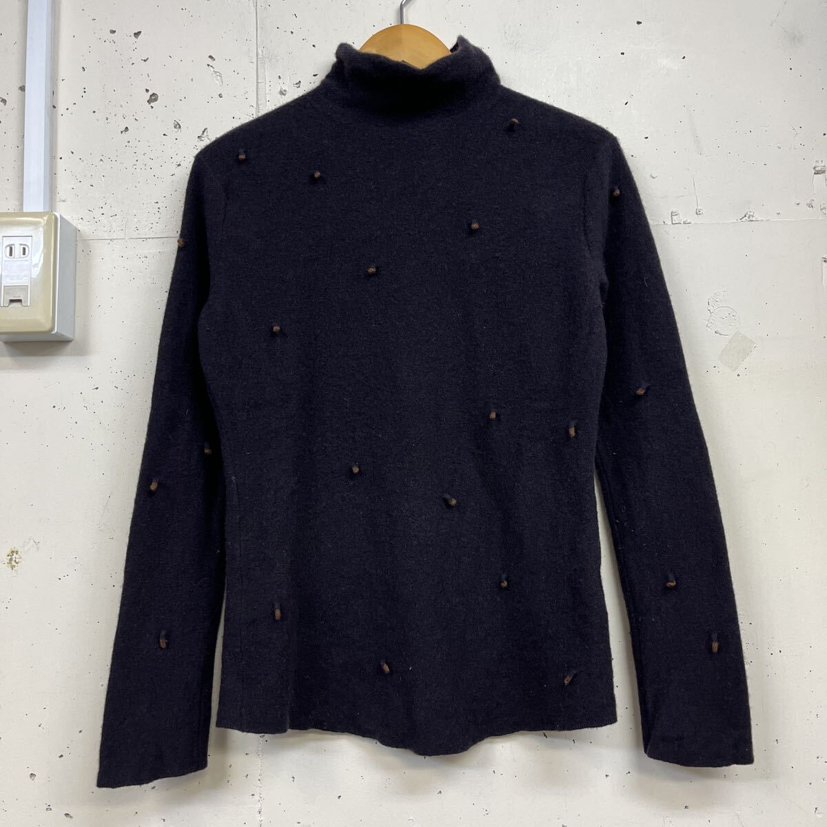 - JURGEN LEHL ヨーガンレール ハイネック ニット セーター 装飾 紺 ネイビー 長袖 レディース