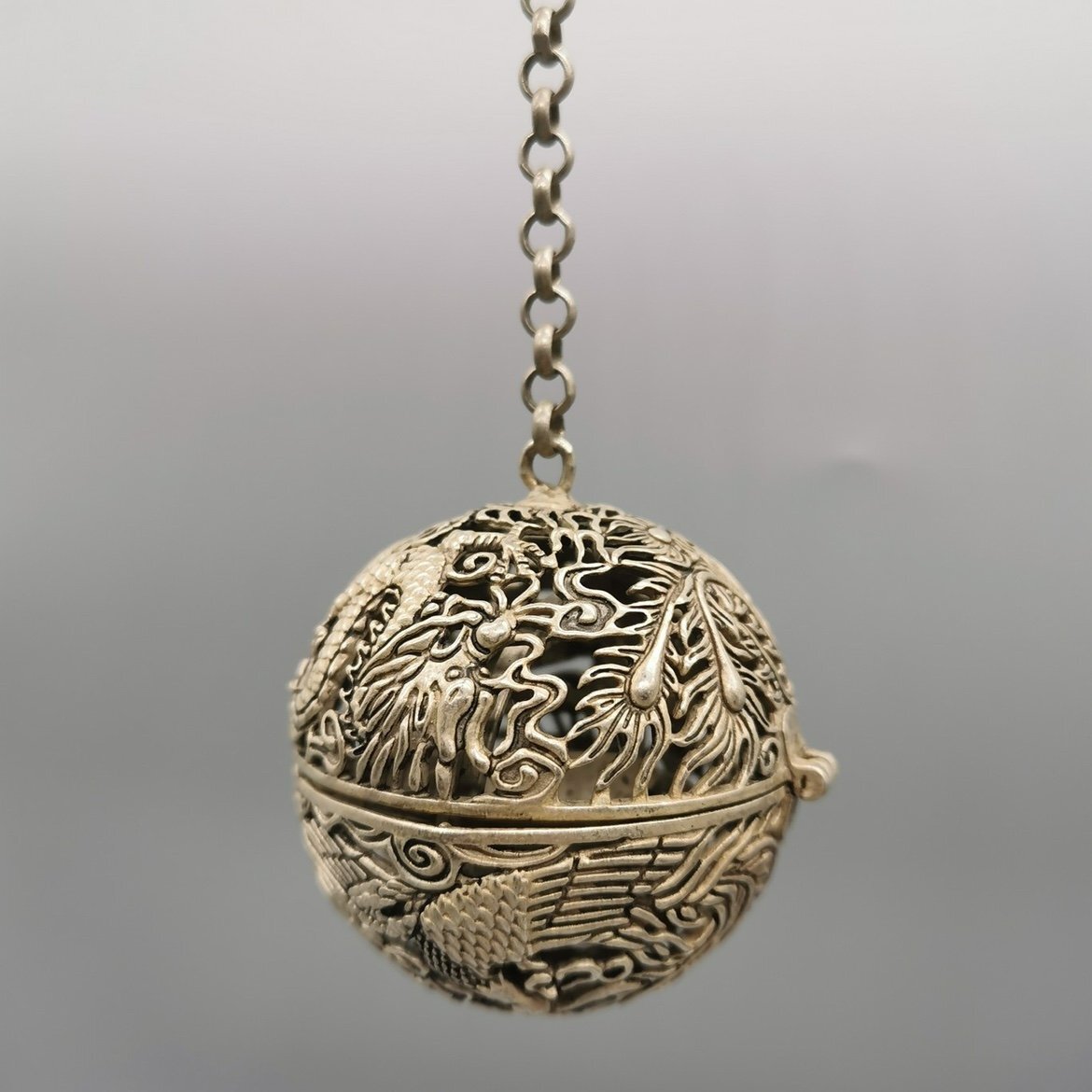 - 送料無料!香球 透かし彫り 銅香炉 花鳥紋 双龍紋 双鳳紋 金属鎖 香道具 裝身具 ストラップ ペンダント 装飾 収蔵品 鑑賞 ランダム発送