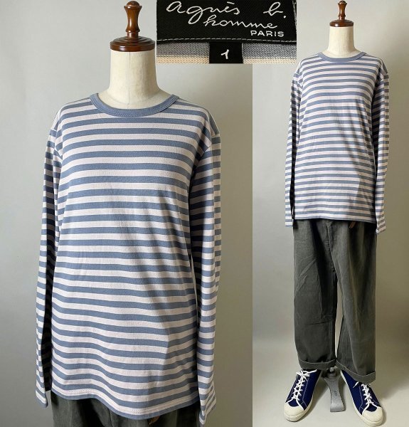 - ★国内正規品 名作 定価15,400円程 日本製 agnes b.homme 4366J008 H21 (J008) アニエスベー オム 細ボーダー ロンT Tシャツ 1 長袖 グレー