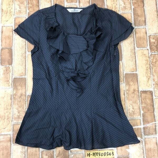- Viaggio Blu ビアッジョブルー レディース フロントフリル ストライプ ブラウス 1 紺