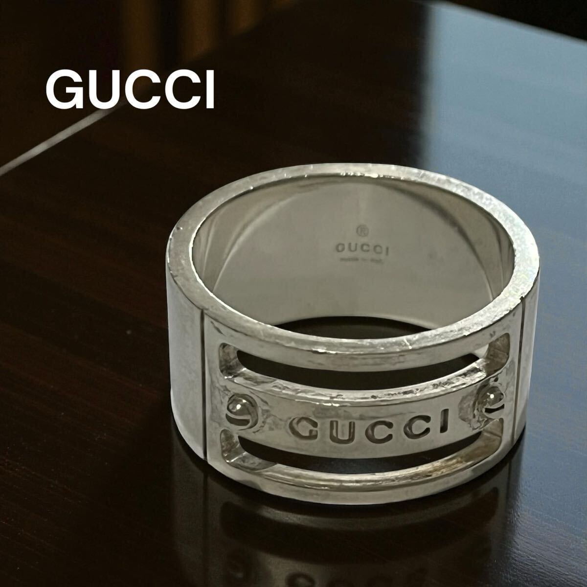 > グッチ GUCCI ロゴヴィス リング 指輪 シルバー925 ワイド 幅広 メンズ レディース 13号 ユニセックス made in italy 良品 アクセサリー