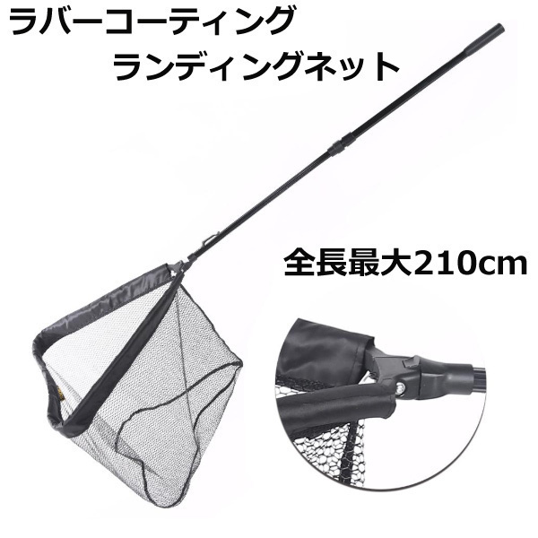 > ランディングネット ラバーネット ワンタッチネット 伸縮 全長125cm-210cm 深さ50cm 折り畳み式 コンパクト 釣り 網 三角 たも