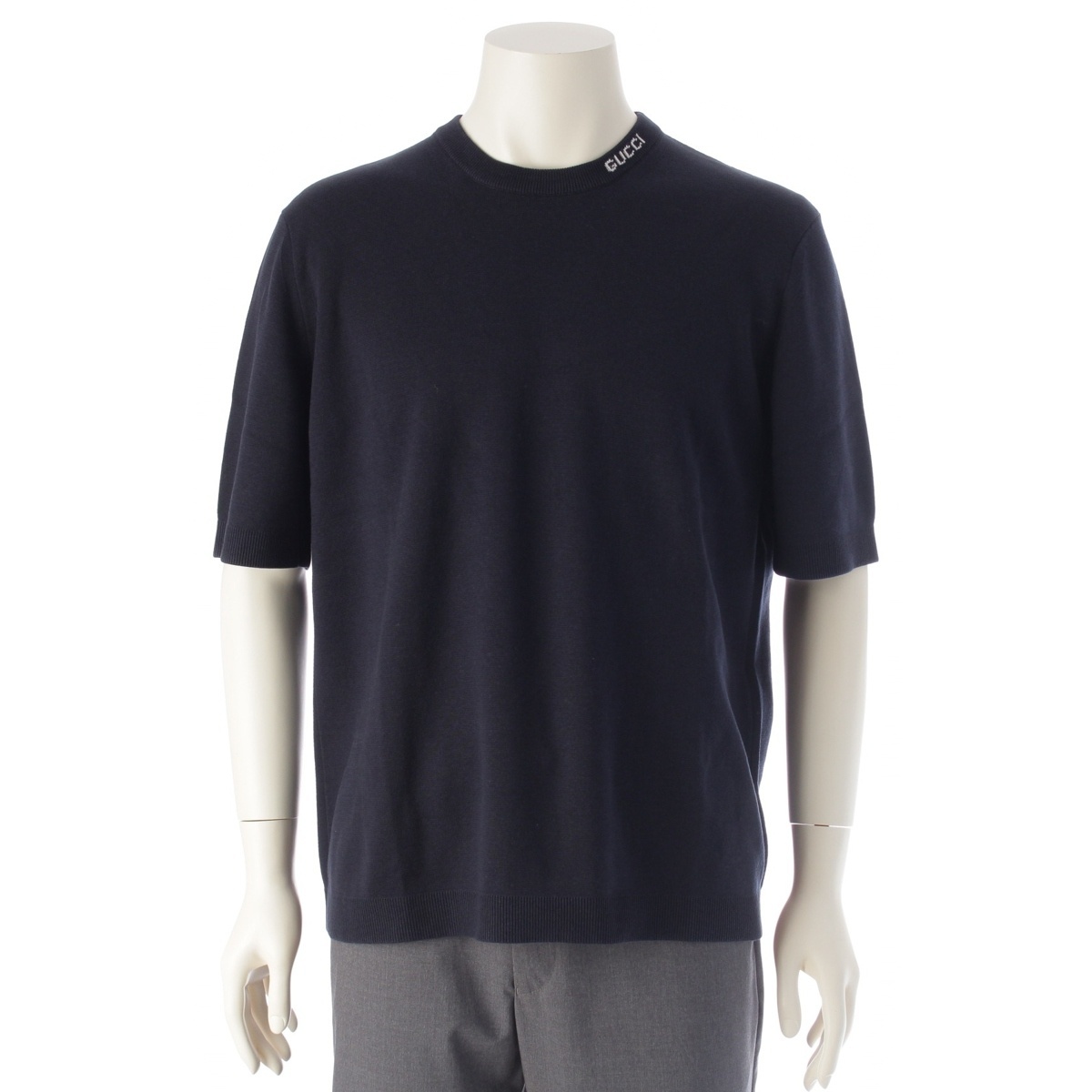- グッチ シルク コットン インターシャ ロゴ刺繍 半袖Tシャツ セーター 787736 ネイビー XL【中古】