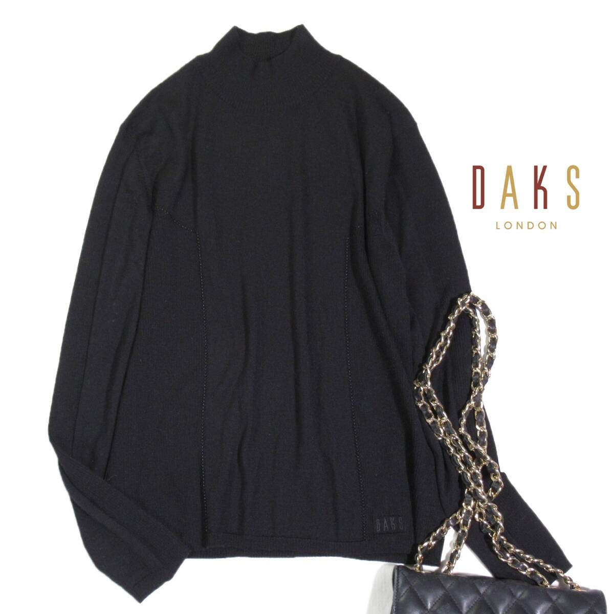 > ダックス DAKS 大人素敵スタイル☆ ウール シルク カシミヤ ビーズ付き ロゴ入り ハイネック デザイン ニットプルオーバー F