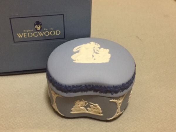 - ◎ウェッジウッド 3色ジャスパー 豆形蓋物 未使用◎cu箱付