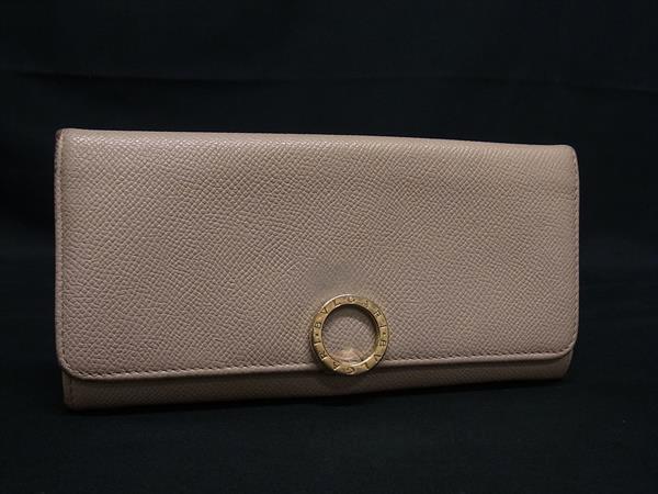> 1円 BVLGARI ブルガリブルガリ レザー 二つ折り 長財布 ウォレット 札入れ 小銭入れ レディース ベージュ系 FT2747