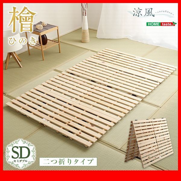 - すのこベッド★すのこベッド 二つ折り式 檜仕様 セミダブル/天然木 日本産檜/湿気 結露 対策 室内布団干し コンパクト収納/ナチュラル/zz
