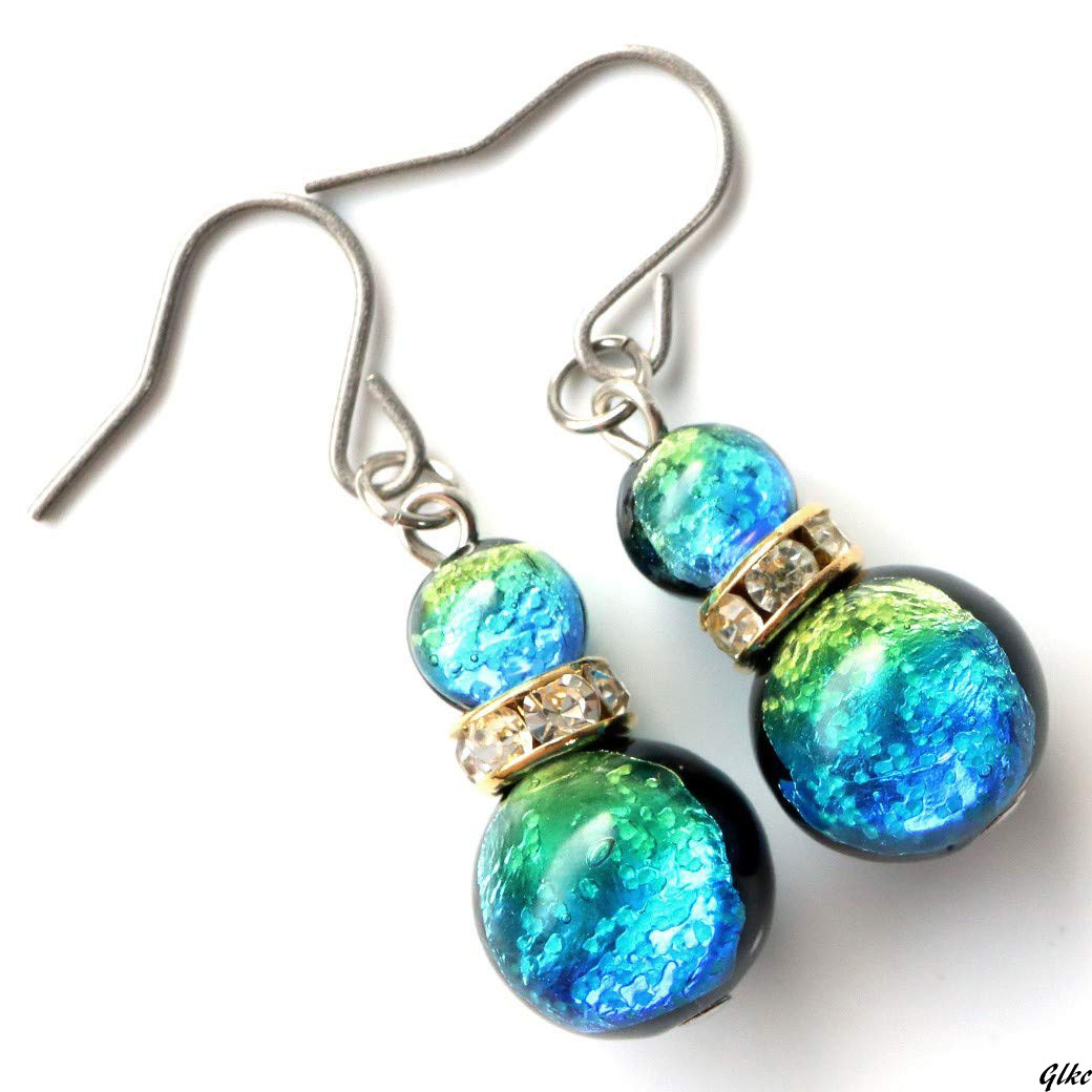 - 【ファッションのアクセントとして日常使いにもおすすめ】 沖縄ホタルガラスピアス 光るピアス 手作り 両耳用 チタンフック 大人可愛い