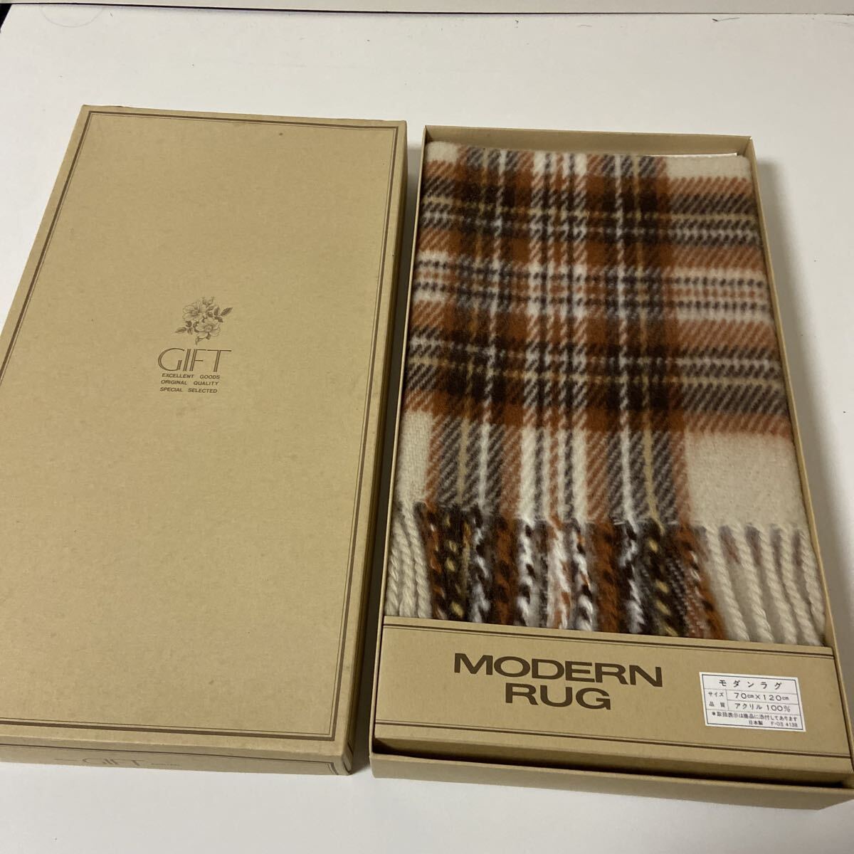 > ★1円スタート★モダンラグ 茶系 チェック柄 アクリル100% 3-4508