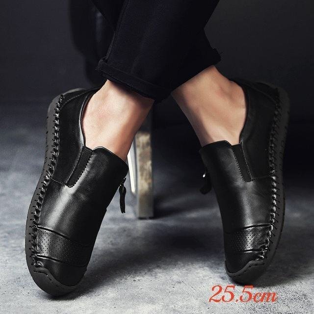 - スリッポン メンズシューズ シューズ ぺたんこ 靴 ドライビングシューズ ローカット 紳士靴 革靴 歩きやすい ブラック 25.5cm