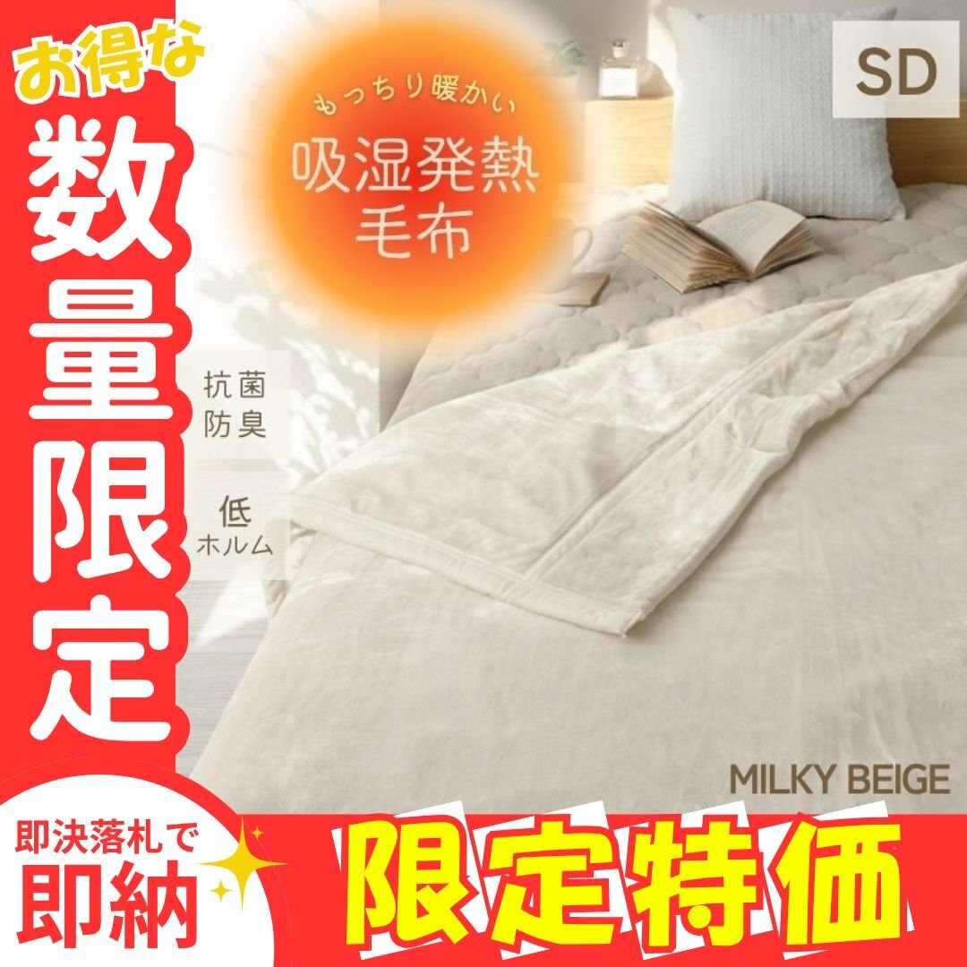 - 限定セール【セミダブル ミルキーベージュ】あったか毛布 吸湿発熱 丸洗い可能 F-Tech 3層構造 抗菌・防臭 静電気防止 シルキータッチ