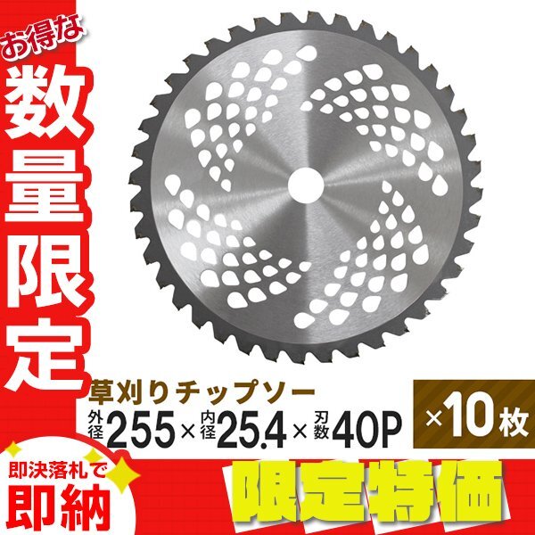 > 【限定セール】10枚セット 草刈りチップソー 替刃 255mm×40P 調整リング付き 草刈機用 芝生 雑草 切断 草刈り機 替え刃 ガーデニング