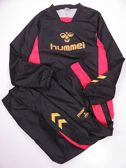 > 【送料無料】ヒュンメル hemmel セットアップ ナイロンジャージ プリント入り ラグラン袖 上下 黒 O/XL