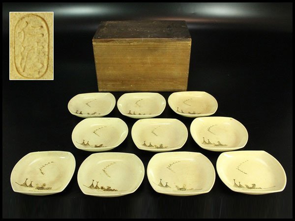 - 【金閣】古清水 仁清 在銘 小皿 十客 旧家蔵出 送料無料(MG962)