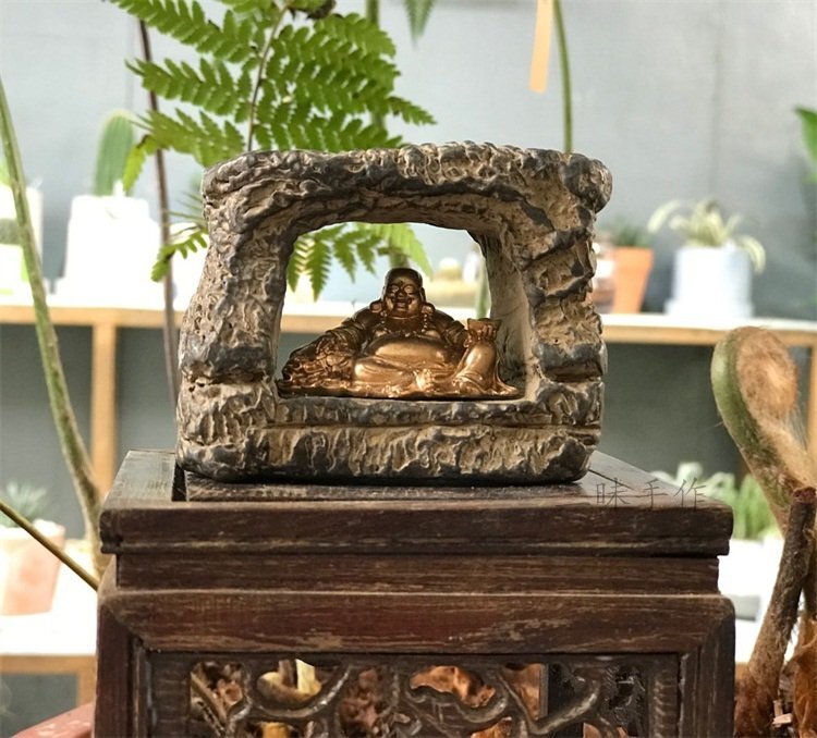- 極細工 仏教古美術 仏像 石窟 大仏坐相 阿弥陀仏 弥勒仏 石仏 仏像 装飾 置物 装飾 収蔵