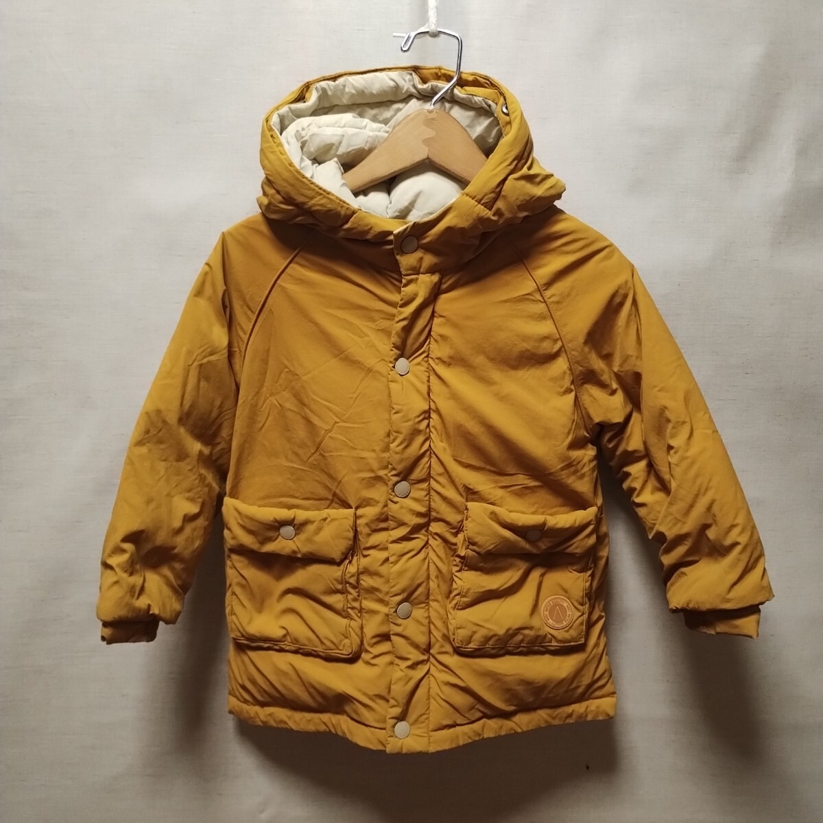 - 全国送料無料 ザラ ZARA 子供服キッズ男&女の子 マスタード色 パーカー付きダウンジャケット104(3-4Y)
