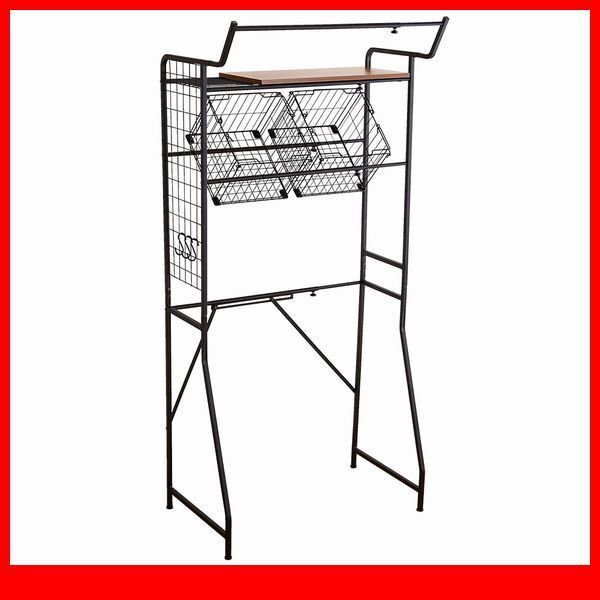 - ランドリー収納★新品/ヴィンテージ ランドリーラック バスケットタイプ/65~90cm幅調整可能 可動棚 バスケット/木目調 ウォールナット/a3
